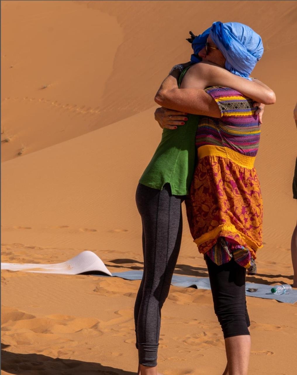Imaginez vos séances de yoga au lever du soleil, sur une dune silencieuse, avec pour seul bruit le vent du désert et le pas lent des dromadaires. Imaginez des cercles de parole autour du feu, des repas cuisinés au sable, une marche méditative chaque jour…